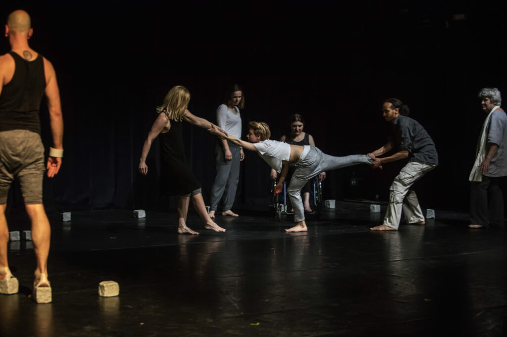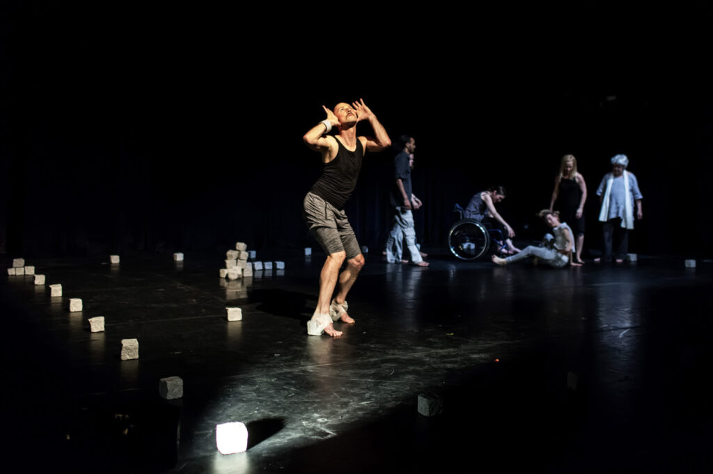 Im Tanz·stück SPUREN treffen 7 Menschen auf·einander.